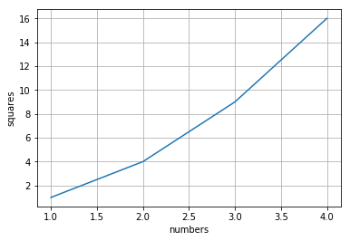 - x1=[1,2,3,4]y1=[1,4,9,16]
