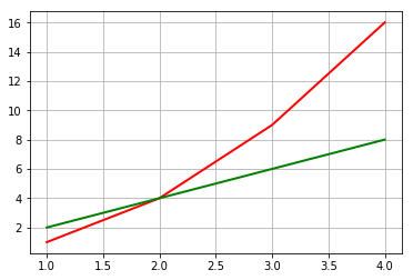這里,行[1]分別對(duì)應(yīng)于X2和Y2。我們還有兩對(duì)參數(shù)'color'、'g'和'linewidth'、'2.0'。