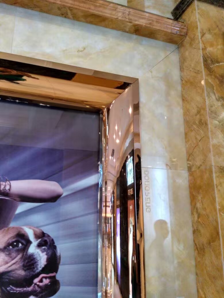 門套樣式:現在不銹鋼門套有兩種樣式,一種是立邊和橫邊采用45度碰角的形式,還有一種是立邊和橫邊垂直安裝,建議用后一種,前一種有時需要焊接碰角,很麻煩,效果還不好。