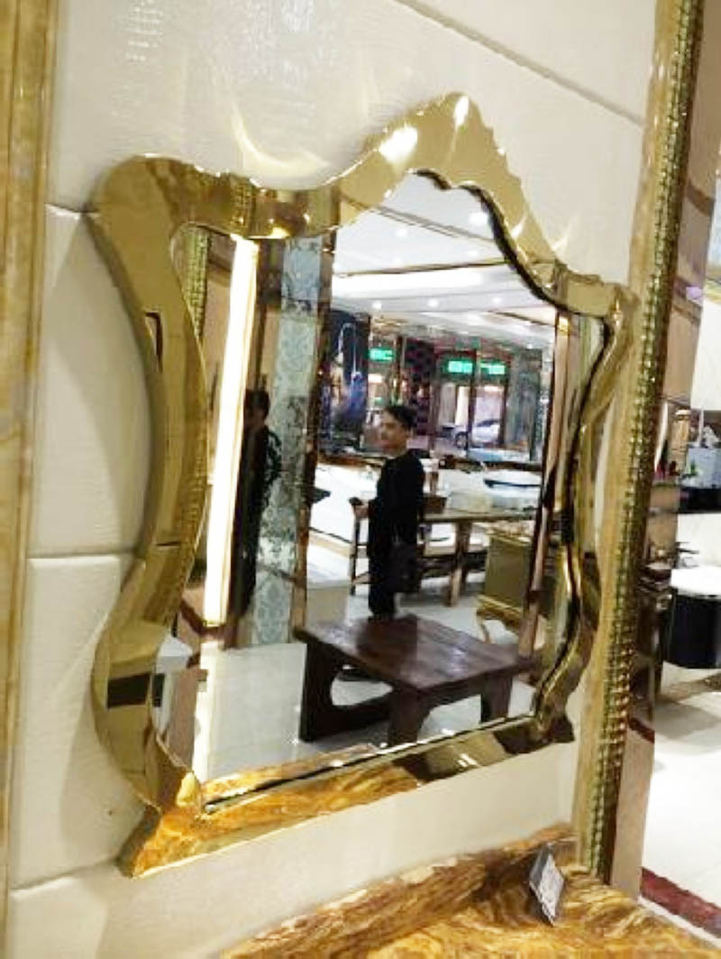不銹鋼一般都是銀色的,但是上圖中的這款衛(wèi)生間不銹鋼鏡框線條,你可以看見它是金色的,因?yàn)檫@個(gè)鏡框經(jīng)過不銹鋼鍍鈦加工處理,所以才會(huì)呈現(xiàn)金色的顏色。