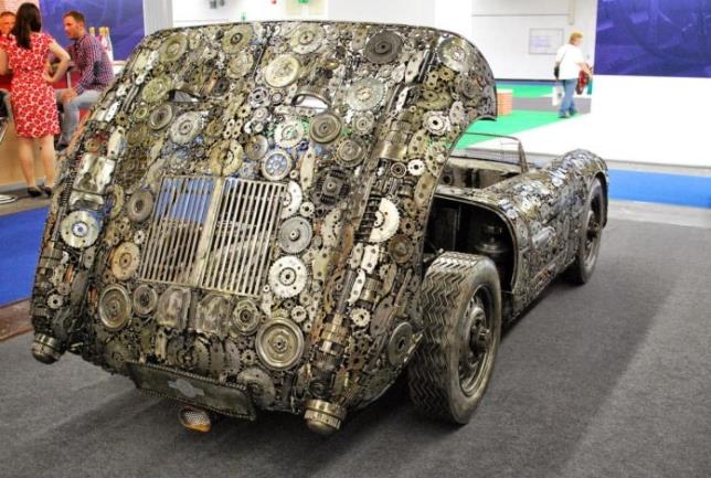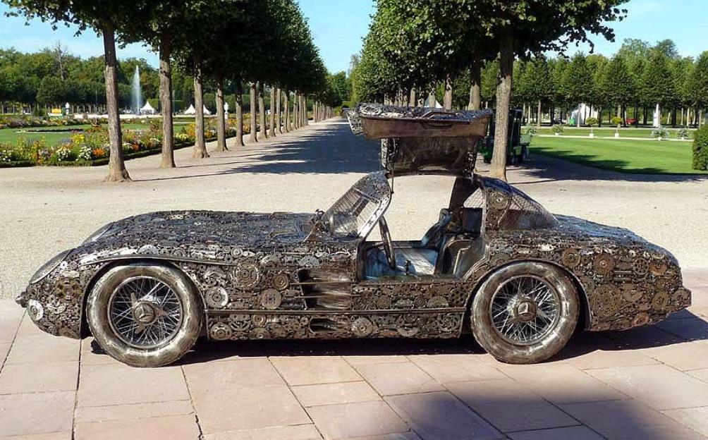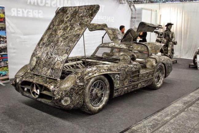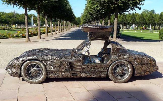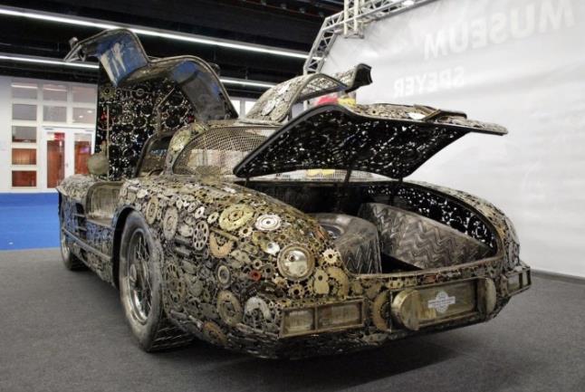 來自德國的armin ciesielski、peter brakel 和 walter willer 在鋼鐵循環利用方面取得來成功。三人用 10, 000件廢金屬建造了一個極其詳細的梅賽德斯-奔馳 300sl "gullwing " 的副本。這里的復雜程度絕對讓人心驚肉跳。請參見以下內容: